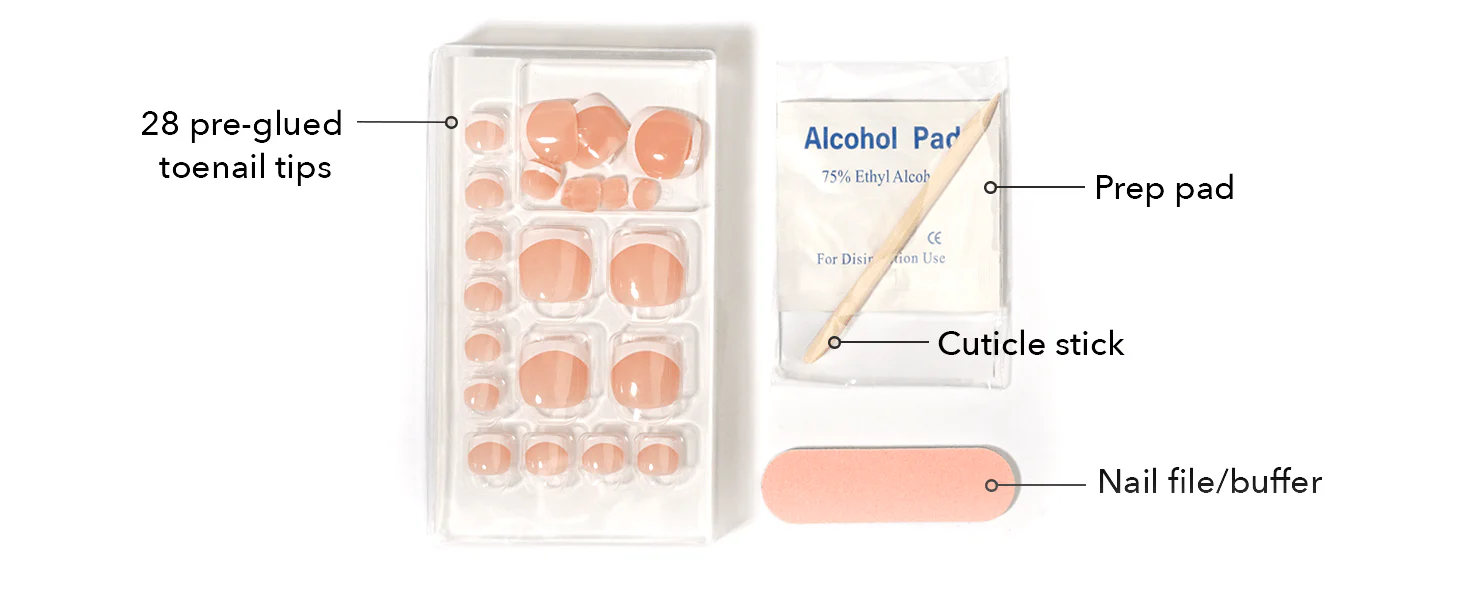 🖤[DIY PEDICURE KIT] Includes 28 pre-glued toenail tips, a nail file/buffer, a prep pad, and a cuticle stick. Easy, beginner-friendly application and gentle, safe removal.