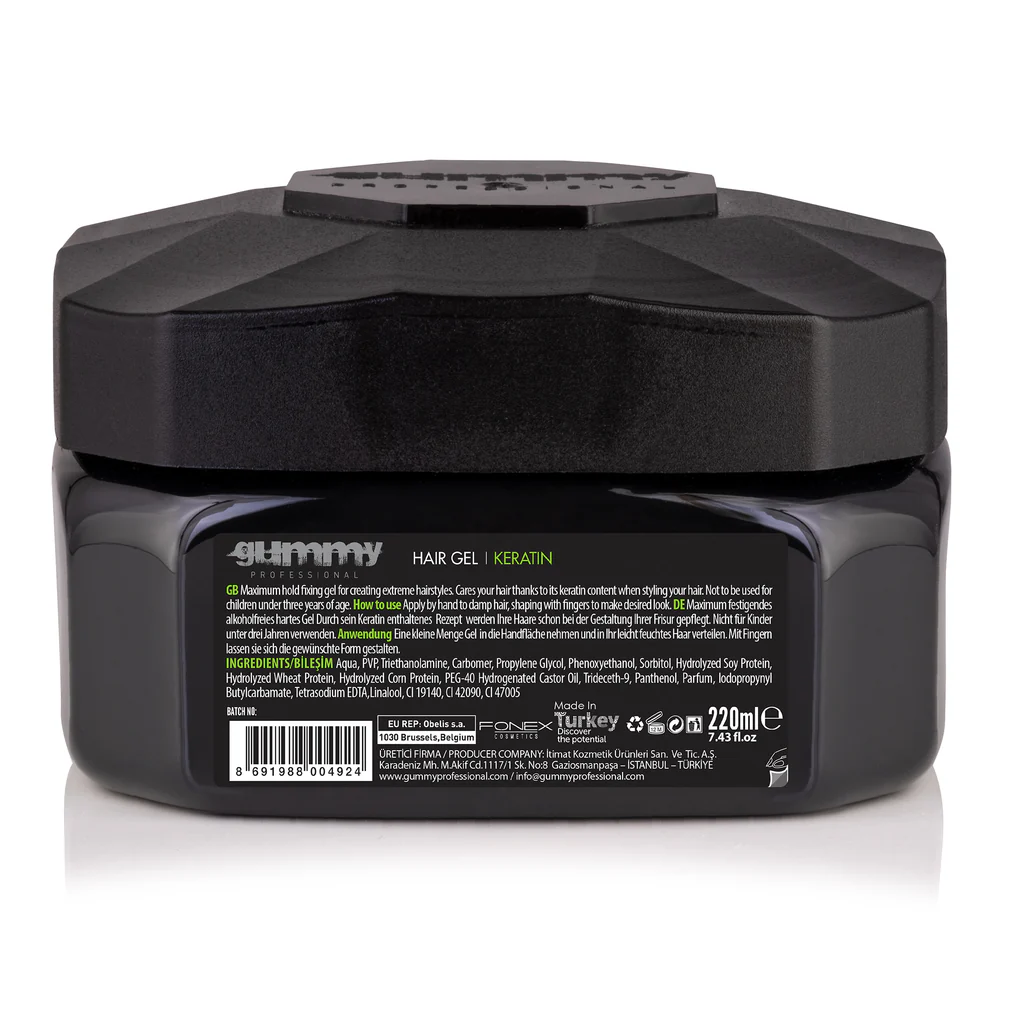 While its extremely strong hold styles the hair, the keratin content provides hair care.
