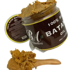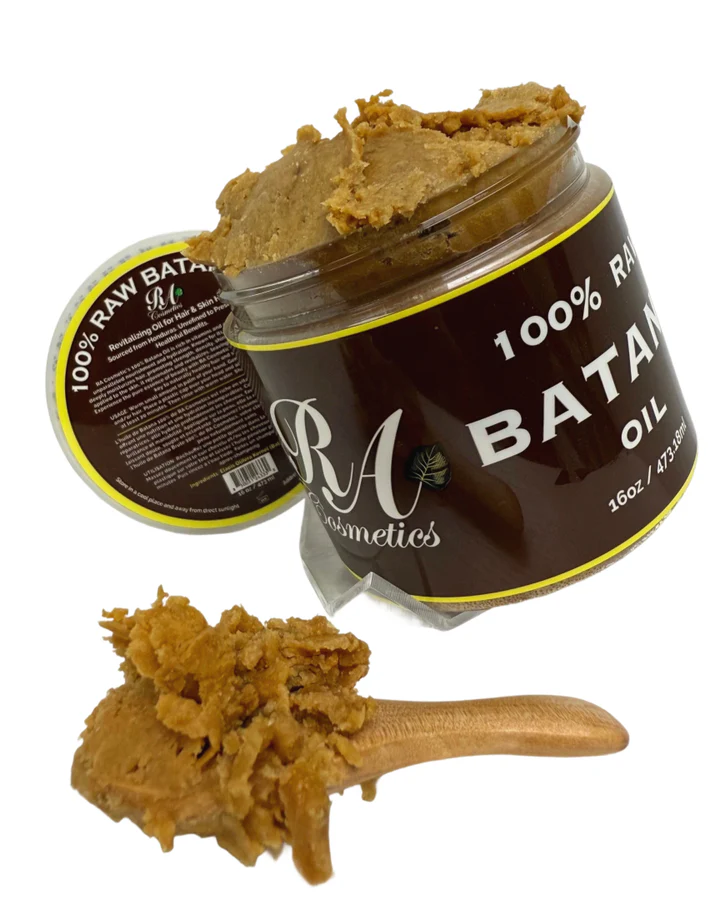 RA Cosmetics 100% Raw Batana Oil is a vitamin rich butter is sourced from Honduras and is made from the nut of the South American Palm Tree. For thousands of years, it has been used to strengthen and nourish hair among the indigenous peoples of the region.