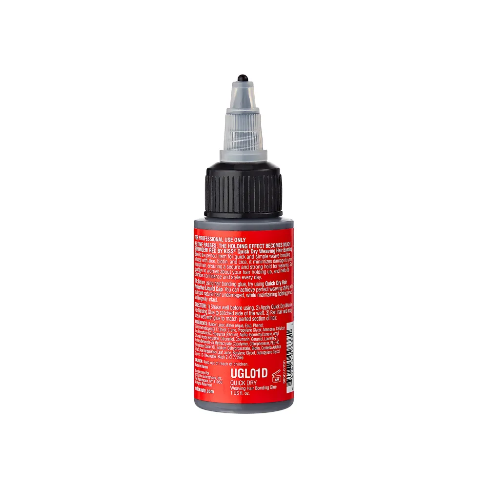 The professional strength Red by Kiss Ultimate Hold Quick Dry Hair Bonding Glue provides secure and long-lasting hold for weaves. Safe and strong hold for quick weaving and hair extensions.