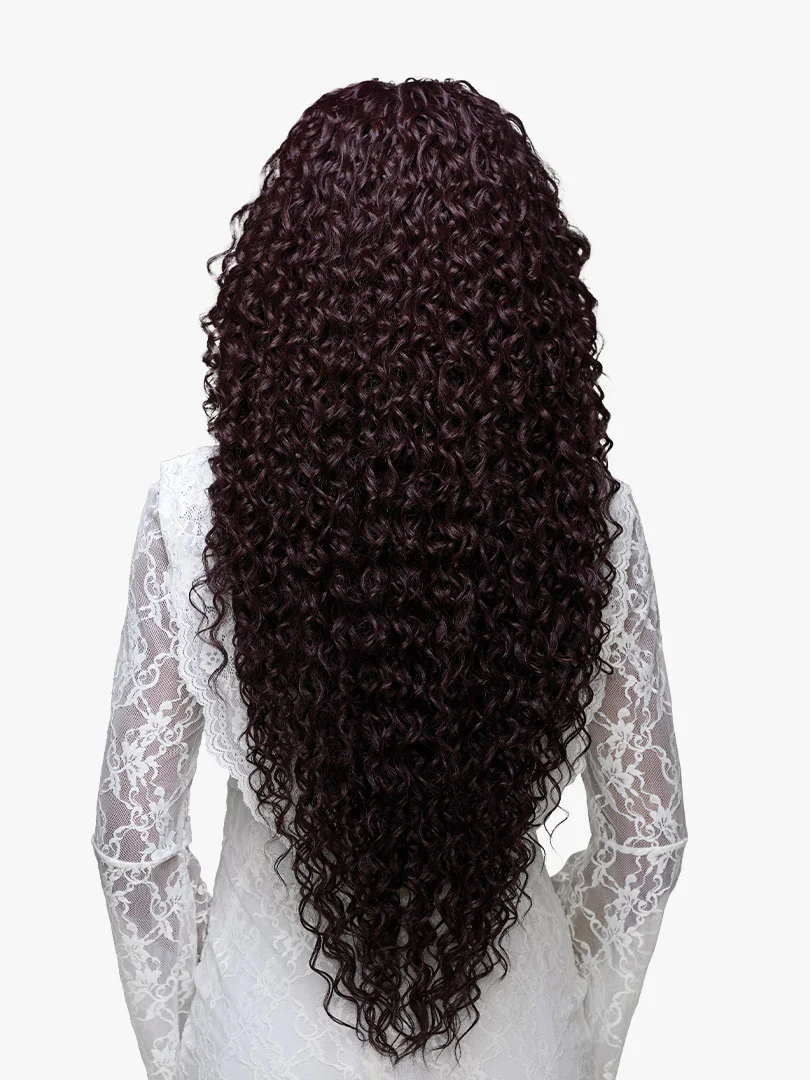 Cascading, tight curls with layers for a grand, cinematic silhouette.